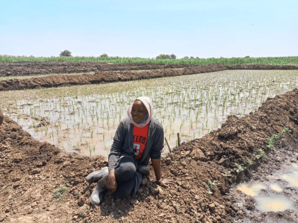 Smallholder farmers working on rice paddies at the Namtari Project site